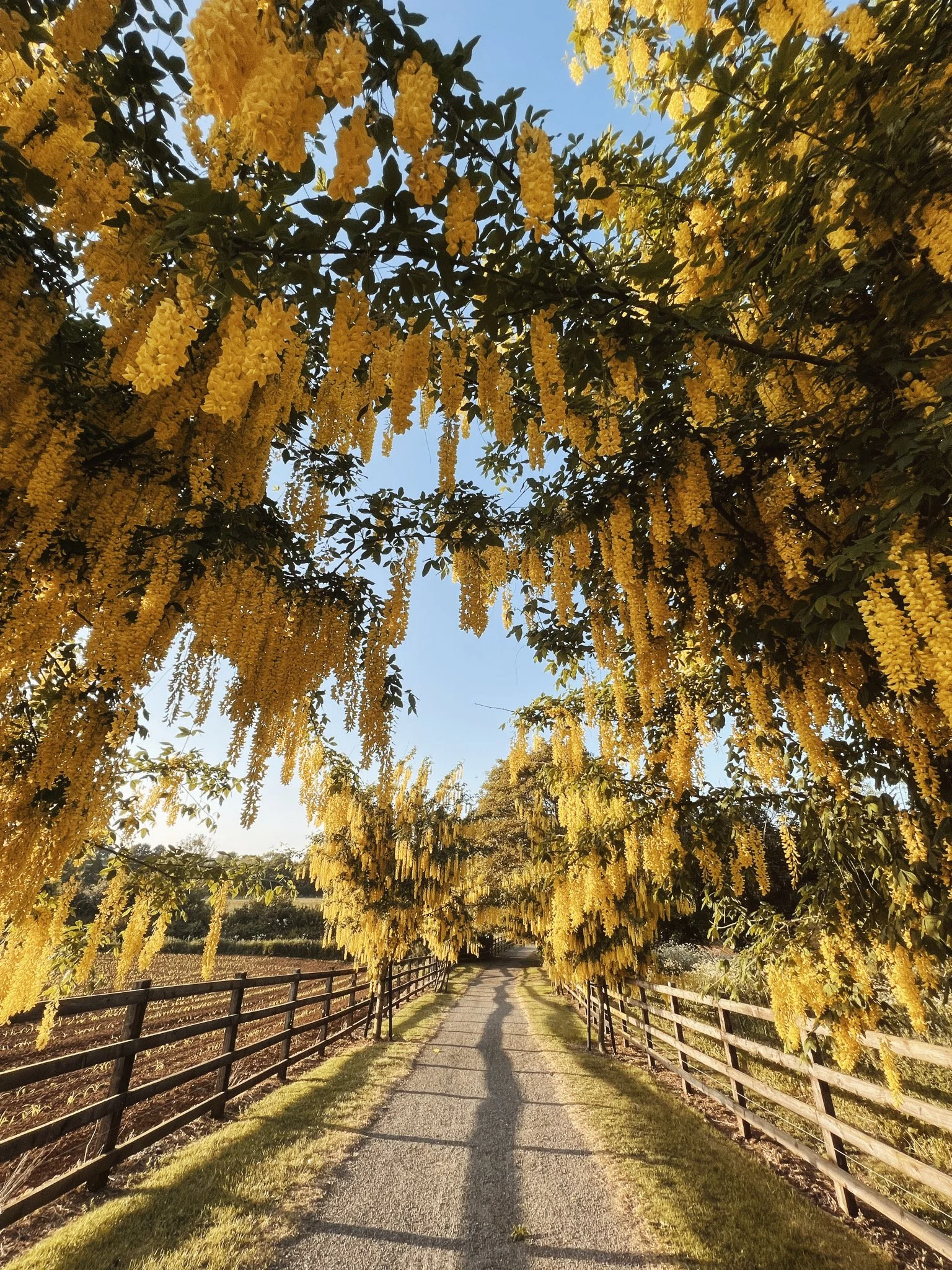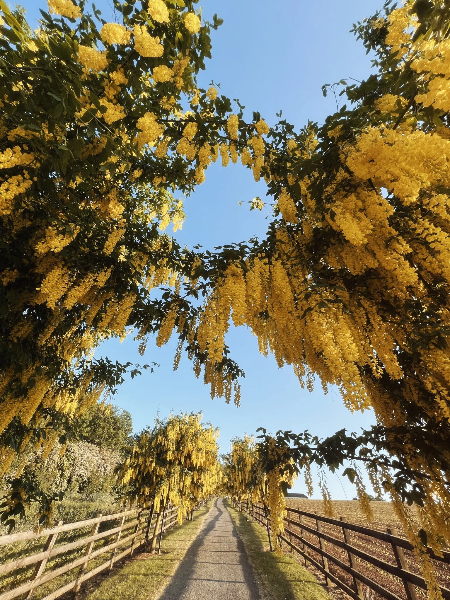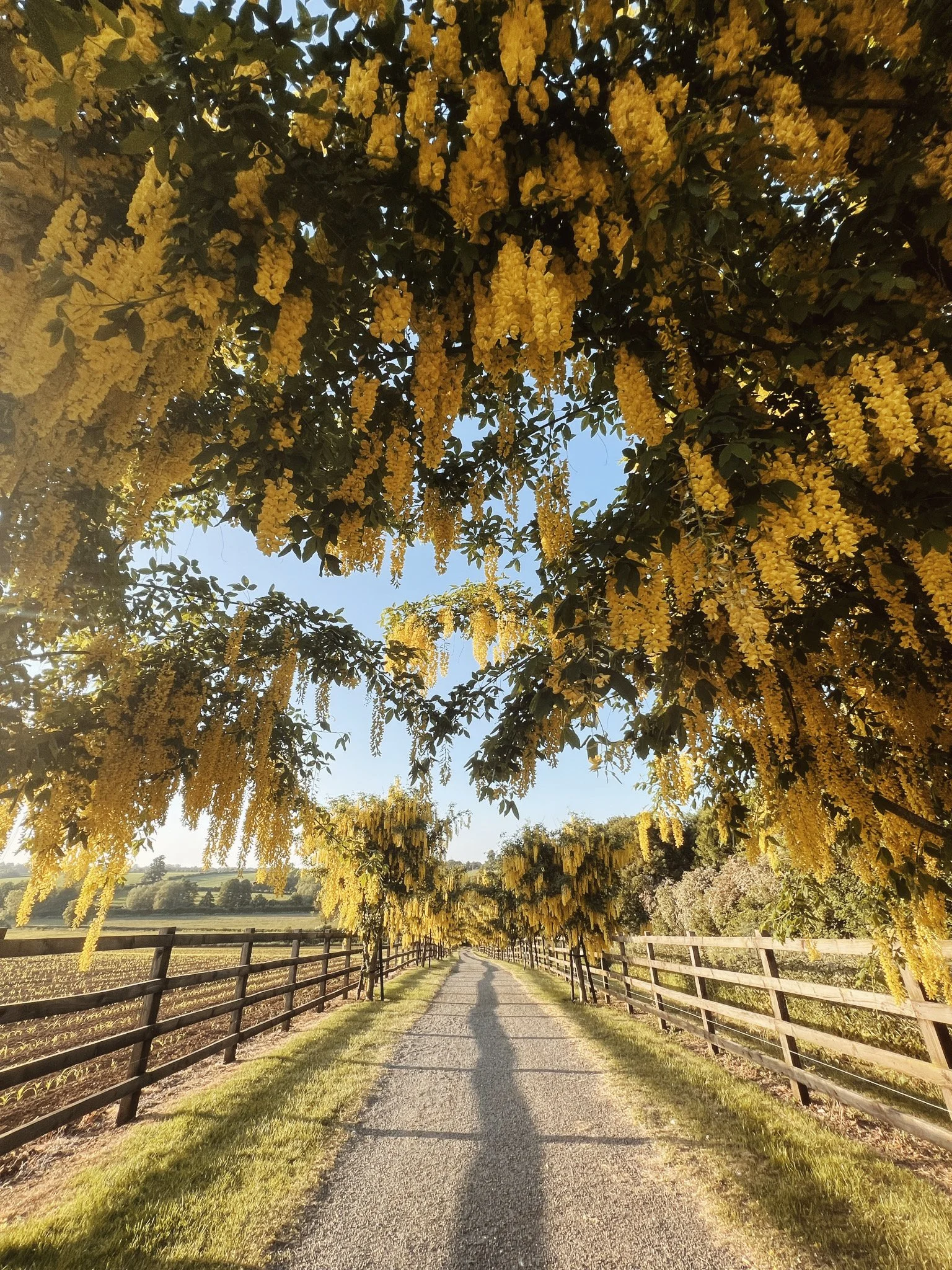 Golden Rain… completely amazed by the aisle of Laburnum Trees! June has already spoiled us with golden evenings!